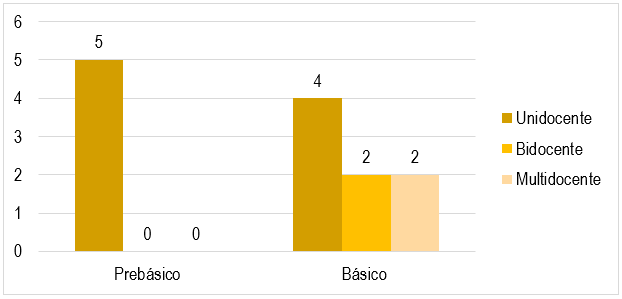 A pesar del aumento de los indicadores de matrícula y número de centros educativos, nueve de los 13 centros educativos solo cuentan con una persona docente para la atención administrativa y la docencia. En el nivel de prebásica hay desde seis hasta 54 estudiantes, y en el nivel básico desde 42 hasta 326 en el año 2020, por centro educativo. Los cinco centros del nivel prebásico son todos unidocentes. De los centros de nivel básico, la mitad son unidocentes, donde además de las funciones administrativas, atiende los seis grados que componen el I y II ciclo de la Educación Básica (ver Figura 2).