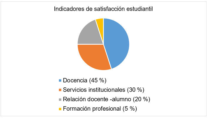 En cuanto a los indicadores de satisfacción estudiantil la docencia es el ámbito que tiene mayor repercusión, siendo el docente figura central, el cual debe ofrecer a los alumnos un clima de aprendizaje cordial, que inculque el estudio como un hábito y no como una obligación, que motive y cree confianza en sus alumnos, para que de esta manera la satisfacción crezca en la población.