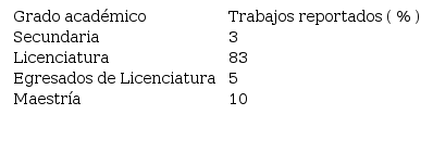 Por otra parte, de acuerdo al nivel en cual se centraron los trabajos el 83 % se realizaron a nivel licenciatura, seguido con nivel maestría (10 %), egresados de licenciatura (5 %) y finalmente con alumnos de secundaria (3 %) (Tabla 3), el enfoque mayormente en estudiantes de licenciatura es que permite la evaluación de parámetros que sirven como referencia para evaluar la satisfacción estudiantil a nivel universitario.