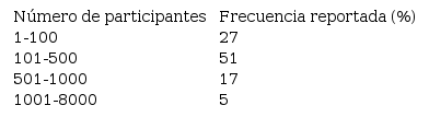 Por otra parte, en el apartado de número de participantes que fueron utilizados, más del 50 % de los trabajos utilizaron población que oscilaba entre 101 a 500 participantes, un 27 % con menos de 100, 17 % de 501-1000 y el 5 % a poblaciones entre 1001-8000 estudiantes (ver Tabla 5).