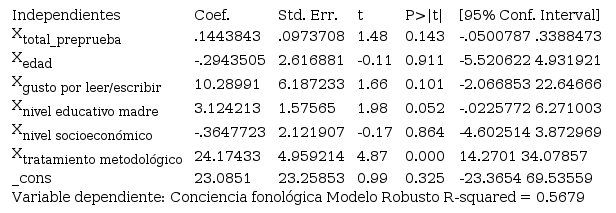 Modelo de regresión lineal múltiple de la conciencia fonológica