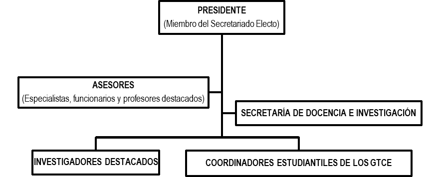 ü Un GTCE responde a resultados en los tres procesos sustantivos de la educación superior, por lo cual debe existir una estructura organizativa dentro del GTCE que responda a todas estas actividades.