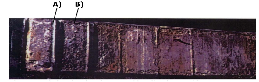 La Fig. 3 muestra una barra altamente dañada, que operó en un hidrogenerador eléctrico. En la barra se muestra el patrón típico de falla de chispas por vibración.