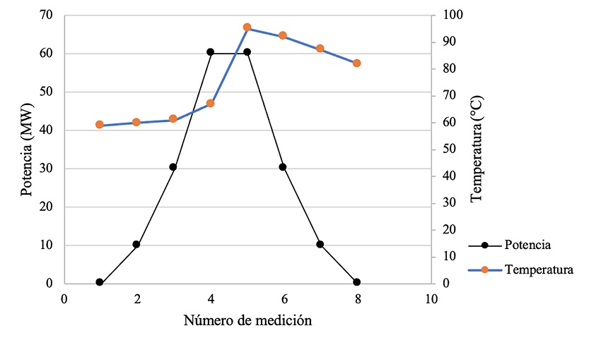 • Paso 5. La unidad se mantiene en una potencia constante de 60 MW. Se registra la medición No. 5, duración 3 h.