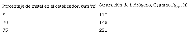 La producción de hidrógeno se cuantifica por medio de los moles producidos definidos como mmolH2 gcat-1 h-1.