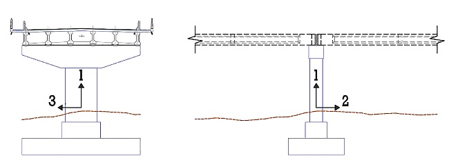 La presente investigación permite estimar el periodo fundamental de vibración del puente en la dirección longitudinal del eje X y transversal del eje Y (Fugura 1 a), y las respuestas sísmicas elásticas de desplazamiento lateral, fuerza cortante y momento flector del pilar en dos direcciones de análisis de acuerdo con los ejes de referencia de la 2215-2652-ri-31-02-038-fig0 5.