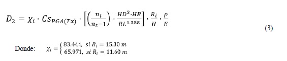 A partir del análisis de los resultados de los 640 modelos paramétricos especificados en la Tabla 2, y la validación del modelo simplificado, se formularon las expresiones que dependen de los parámetros geométricos y sísmicos. El estudio permite establecer tales expresiones en función de los parámetros descritos, similar a lo realizado en la investigación de una estructura no convencional [17], definida como aquella que no corresponde a la estructura de un edificio.
