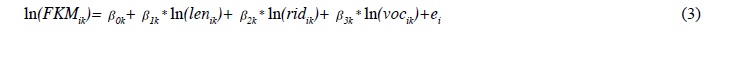 The proposed model estimates the fare-per-kilometer variable with covariates such as ridership, vehicle occupancy and route length. Other studies have also considered the effects of operational characteristics of the bus public network on fare structure. Ling [13] estimated, given the fares and ridership in the flat fare system, how the total ridership, operator revenue, passenger-km, and consumer surplus would change if the fare structure changes to fare differential system. Fairness and equity, increased revenue and increased ridership were identified as some reasons for promoting differentiated fares.