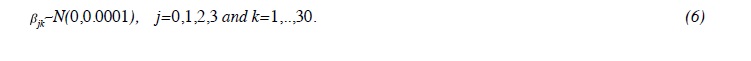 The selection of the prior distribution for the betas differentiates between and independent and correlated model. The prior distributions in the case of the independent coefficient model are: