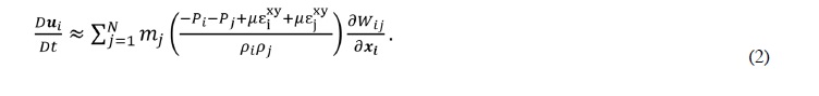 A complete description of all applicable equations of fluid flow is beyond of the scope of this article, so only the main numerical driver for particle dynamics will be mentioned in this section. This is the application of the particle approximation to the equation of conservation of momentum [7], shown as (2) for two-dimensional flow in orthogonal coordinates:
