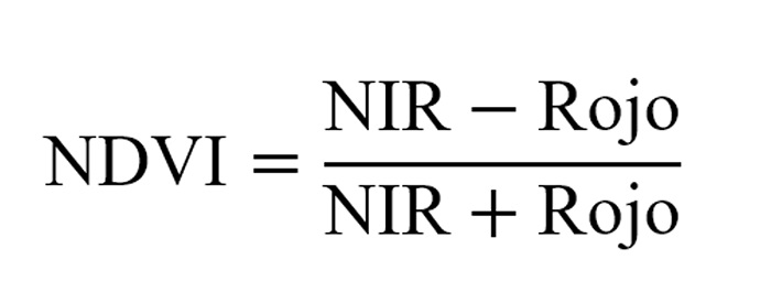 Donde NIR es la banda centrada en los 832.8 nm (banda 8) y Rojo es la banda centrada en los 664.3 nm (banda 4).