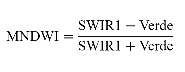 Donde SWIR1 es la banda centrada en los 1613.7 nm (banda 11), y Verde es la banda centrada en los 559.8 nm (banda 3).