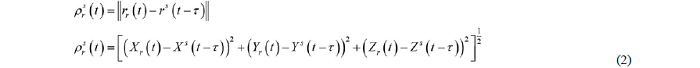 Si se asume, por un momento, que el reloj del receptor está sincronizado con el reloj de satélite, que no hay influencia de la ionósfera ni la tropósfera y que no se tiene la influencia de otras fuentes que afectan aleatoriamente la medición, la ecuación (1) tomará la forma presentada en la ecuación (2) [5].