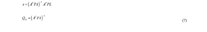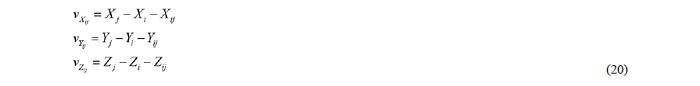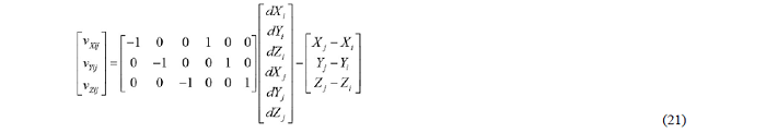 De acuerdo con la teoría del ajuste por mínimos cuadrados aplicada a las componentes de una línea base entre los puntos i y j, estas se pueden considerar como observaciones. La forma linealizada de esta relación se puede ver en la ecuación (19) [9], [10].
