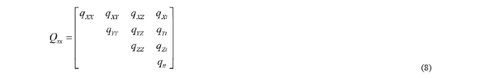 Los parámetros que permiten estimar la exactitud de las coordenadas del receptor se obtienen por medio de la matriz de cofactores Q xxdel vector solución x. Considerando, inicialmente, una matriz de pesos P identidad, la correspondiente matriz de cofactores Q xx estará dada por la relación (ATA) -1. La diagonal de esta matriz tendrá las varianzas de las coordenadas del receptor y del estado del reloj, mientras que los elementos fuera de la diagonal, las covarianzas, representan el grado de correlación entre las incógnitas como se muestra en la ecuación (8).