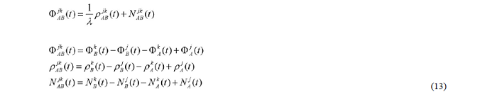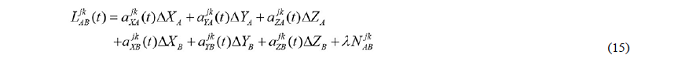 Este apartado se desarrollará partiendo de la relación final de las dobles diferencias, debido a que se cancela el parámetro del estado del reloj del satélite y receptor. De esta manera, para dos puntos A y B observando dos satélites j y k toma la forma que se presenta en el conjunto de ecuaciones de (13) [7], [8].