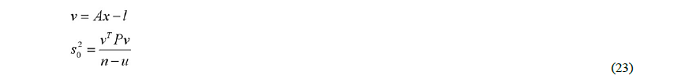 Luego, a partir de los residuos vi de las observaciones, la cantidad de observaciones n y el número de incógnitas o parámetros u, se hace una estimación de la varianza de referencia por medio de la varianza empírica s 20, como se presenta en la ecuación (23).