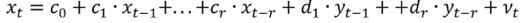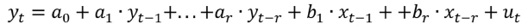 The hypothesis test H0: b1 = b2 = … = br = 0 vs. HA “not H0”, tests if xt does not cause yt (in the sense of Granger); similarly, the hypothesis test H0: d1 = d2 = … = dr = 0 vs. HA “not H0” tests if yt does not cause xt. Rejecting the null hypothesis implies the existence of Granger causality.
