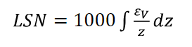Similar al LPIISH, el número de severidad de licuación (LSN) utiliza una función de ponderación de potencia en profundidad (es decir, 1/z, donde z es profundidad) para determinar la respuesta acumulada de un perfil a la licuación. También incluye contribuciones de todas las capas que tienen un FS < 2 (a diferencia del uso de solo capas con FS < 1 al calcular el LPI). El LSN se calcula como: