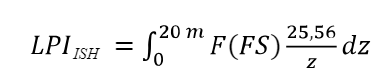 (3)FS es el factor de seguridad contra licuación obtenido por medio de un procedimiento de simplificado de evaluación de licuación basado en esfuerzos. Además, w(z) es una función de ponderación lineal dada por