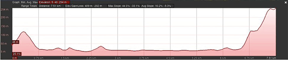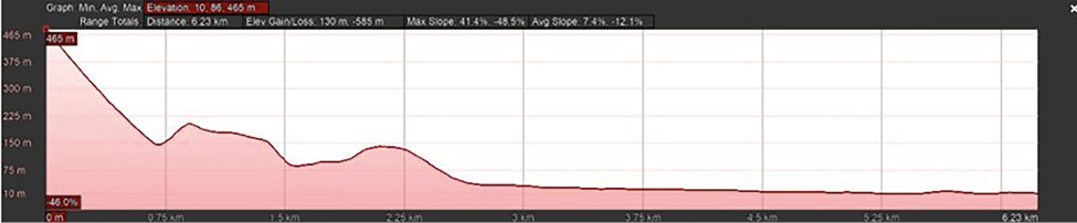 La Fig. 13 muestra la ubicación en planta de dos secciones topográficas obtenidas de Google Earth, mientras que las Fig. 14 y 15 muestran la variación de elevaciones para dichas secciones.