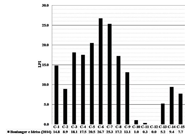Los índices LPI y LSN cuantifican el daño inducido por licuación al combinar los efectos de la severidad de la licuación (valor de FL o FS), el espesor de los suelos licuados y su ubicación dentro el perfil del suelo. Los valores umbral de estos índices que se muestran en el Cuadro II, en relación con los niveles de rendimiento, son solo valores indicativos. Estos umbrales pueden variar y no cubren todos los casos de licuación (escenarios y condiciones del terreno). Estos índices son típicamente utilizados para analizar un área grande y en tales aplicaciones tienen una capacidad de predicción razonable.