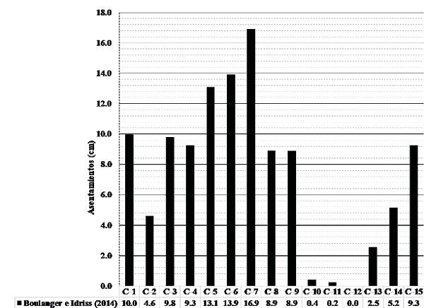 Para la zona que abarca los sondeos C-10, C-13, C-12 y C-11, los valores de LPI y LSN permiten concluir que en este caso se esperarían daños leves o insignificantes, asociados a deformaciones despreciables del terreno y pequeños asentamientos. Esta misma condición se refleja en la estimación de asentamientos realizada, pues, para los sondeos C-10, C-11 y C-12, los asentamientos estimados están por debajo de los 0,5 cm y, para el sondeo C-13, se estimaron en 2,5 cm, aproximadamente.