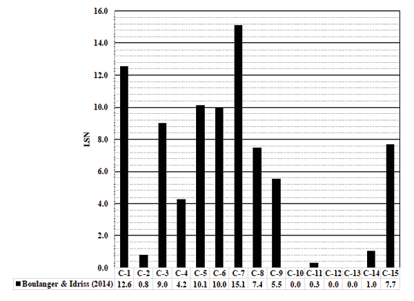 Similar al LPI, el LSN se correlacionó bastante bien con la gravedad de las manifestaciones superficiales observadas durante la secuencia de sismos de Canterbury, Nueva Zelanda, ocurrida durante entre el 2010- 2011, en áreas donde la licuación no se manifestó en forma de desplazamientos laterales y para perfiles que no tenían una capa de sello de arcilla o múltiples capas no licuables intercaladas con las capas licuables [4]. La deformación volumétrica acumulada de las capas licuables en el perfil del suelo, S1VD, no fue tan precisa como el LPI o el LSN. Una comparación de la precisión de LSN versus la precisión de LPIISHno fue concluyente según van Ballegooy et al.[7].
