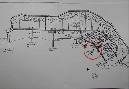 El terminal de buques tanqueros se encuentra geográficamente en el mar Caribe dentro de una refinería petrolera y posee seis muelles de atraque. La bahía es espaciosa (ver Fig. 1 y Fig. 2), además, los puestos de atraque y la batimetría de la bahía permiten recibir buques mundialmente conocidos como Very Large Crude Carriers (VLCC por sus siglas en inglés), los cuales tienen capacidad de carga hasta 250.000 t.