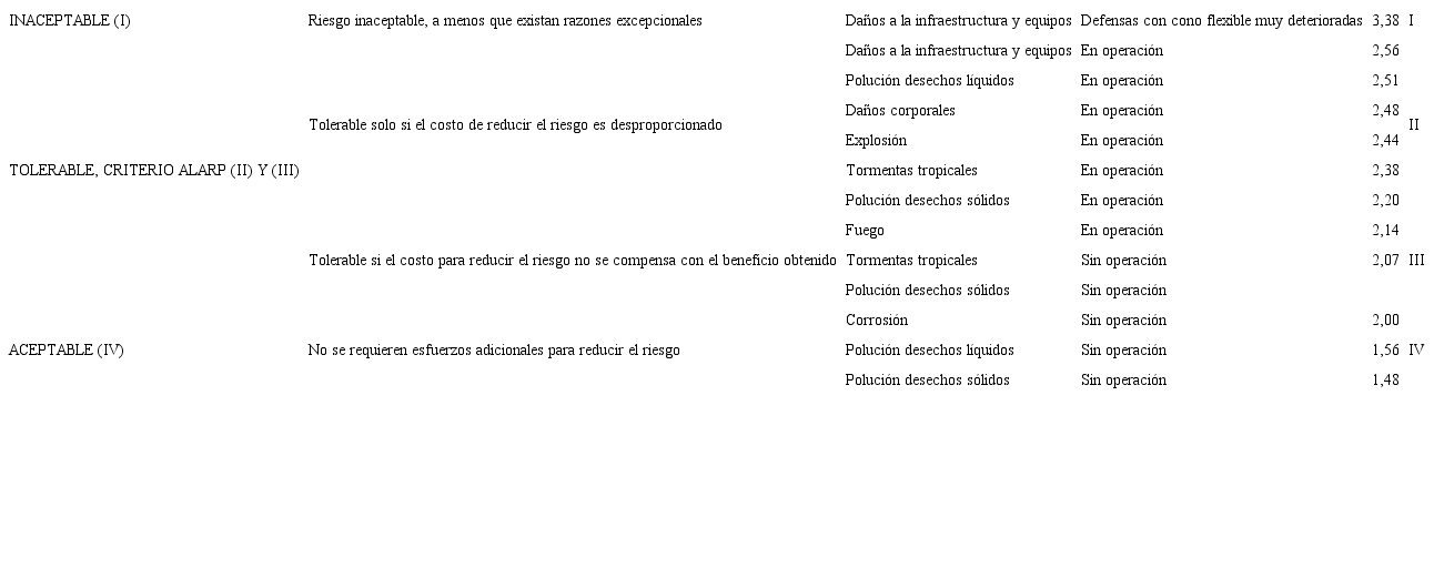TOLERABLE, Criterio ALARP (II): < 2,60 ≥ 2,20 y (III): < 2,20 ≥ 2,00