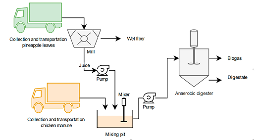 Keywords: Anaerobic codigestion, biogas, chicken manure, pineapple leaves, techno-economic feasibility.