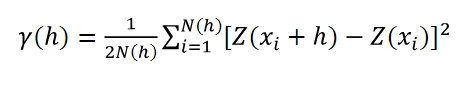In kriging, the spatial dependence structure is modeled through a semivariogram, a function that relates the mean semivariance (the squared differences in the Z value for pairs of locations xi, for locations with known Z values) for all N pairs of locations within a range of distances h[1],[6],[7]: