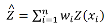Under the kriging method, the predicted Ẑ values for xi locations with unknown land values result from a weighted average of locations (with weights wi) with known land value, Z(xi):