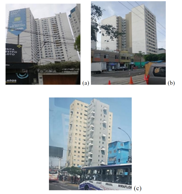 La Fig. 1 muestra diferentes edificios recientemente construidos en el distrito de Jesús María de la provincia de Lima, Perú. Estos presentan características de configuración irregular en planta tipo L, H y T, además, cuentan con esquinas entrantes y discontinuidades del diafragma.