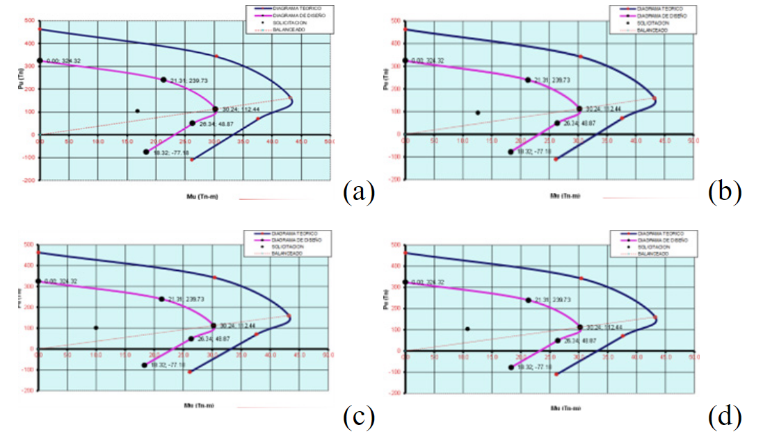 De igual forma, al examinar las demandas mediante un diagrama de interacción para columnas en el primer nivel, se observa que la tipología L presentó mayores demandas en comparación con las tipologías H, T y U. Esto ocasionado por la torsión.