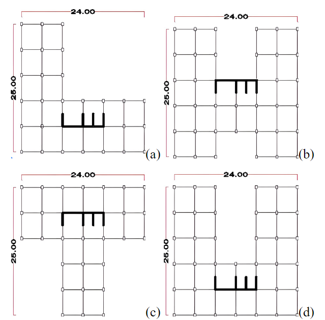 En una configuración irregular horizontal tipo L, el desplazamiento lateral y la acción de torsión dominan el comportamiento sísmico, lo cual causa daños locales a las columnas exteriores y amenaza la robustez del edificio durante el terremoto [30], por lo que las columnas de las esquinas entrantes y bordes de la estructura tendrán mayor demanda sísmica.