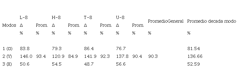 Los resultados obtenidos muestran que los periodos fundamentales de vibración fueron más largos en los modelos con DF en un 90.3 %, lo cual se muestra en el CUADRO XII. Además, se presentan las respuestas de la variación de los periodos de vibración de los tres modos de cada tipología.