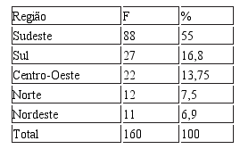 Durante a semana em que o questionário esteve aberto na rede, observou-se que houve respostas de todo o Brasil. A maior parte dos respondentes se manifestou nos dois primeiros dias de aplicação, e as respostas diminuíram dia após dia, até que no sétimo dia houve apenas um respondente. Isso se deve ao fato de que os posts mais recentes são priorizados nas páginas dos participantes dessa mídia social, então, quando se realiza um compartilhamento, o maior número de impactos acontece quando ele é lançado, depois será relegado ao segundo plano, dando lugar a novas atualizações. Nesse ponto, o levantamento foi concluído, perfazendo o total de cento e sessenta respondentes. A Tabela 2 apresenta dia a dia o número de respondentes.