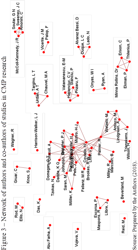 Another contribution of this study is the confirmation of the three classic laws of bibliometric studies: the laws of Lotka, Zipf and Bradfort. The research demonstrates that, in the period analyzed, there was a limited number of journals published papers on the theme, as posited by Bradford’s law. According to Lotka’s law, the core of the most productive authors that published CMP papers is still reduced. Lastly, per Zipf’s law, there is a small number of keywords (search criteria) that is often used in the CMP research. In studies of a similar nature, the recommended approach is to follow these laws of bibliometric analysis (QUEVEDO-SILVA et al., 2016).