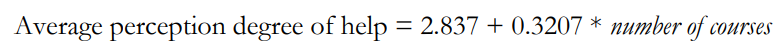 To measure this relationship, the simple linear regression method was used, obtaining equation 5. For each course the employee attends, there is an increase in the average level of perceived help in the program by 0.3207. The maximum of five courses will increase the perception of help by 1.60. This represents an approximately 56% increase in the perception of improved personal management.