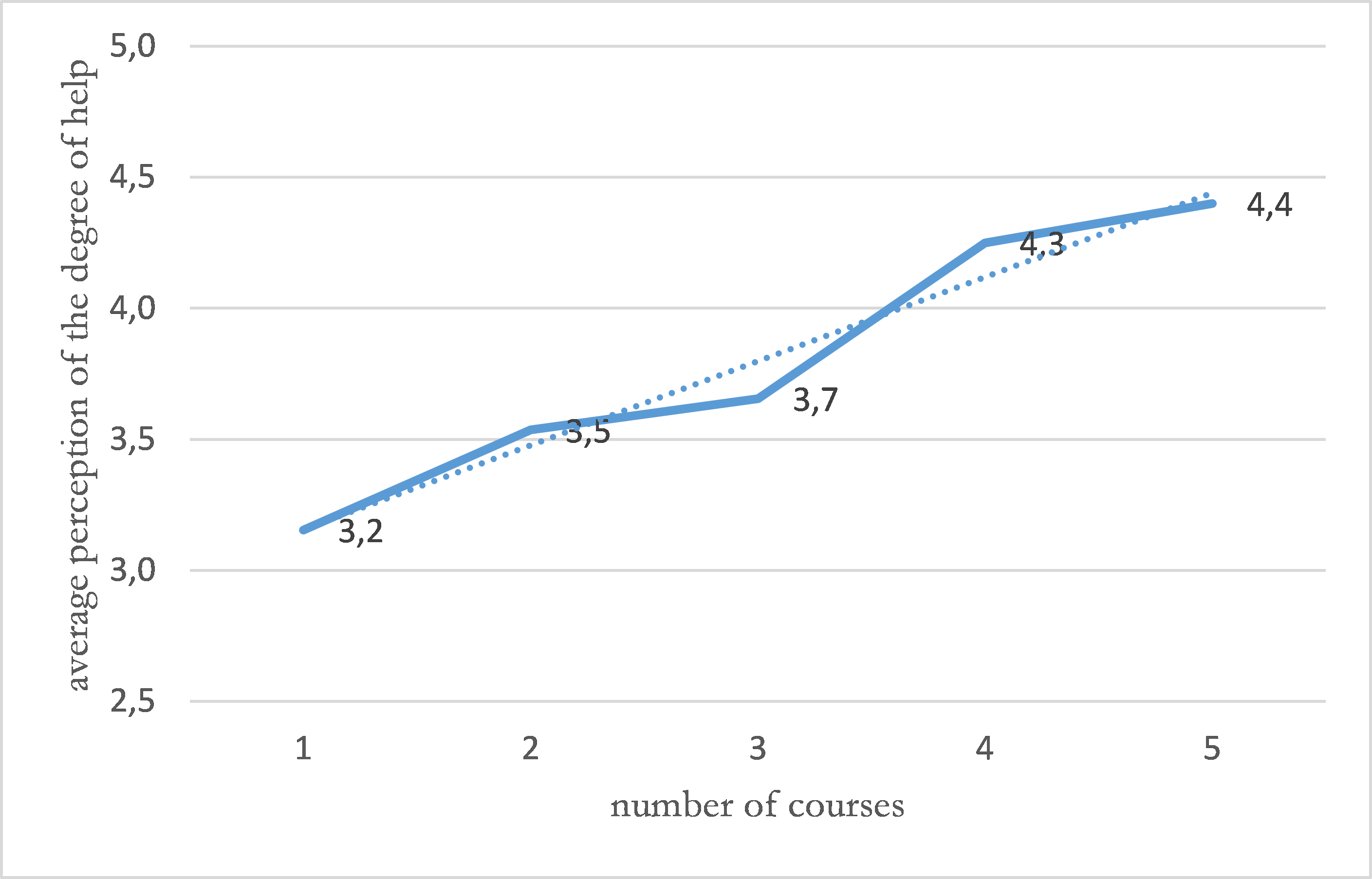 Another point observed was the relation to the average perception of the employee about the degree of help of the program in its financial management, and the number of courses that it participated. The greater the number of courses attended by the employee, the greater his perception of the help that the program promotes in managing his personal finances (figure 2).