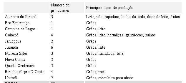 Durante a coleta de dados foram desenvolvidas entrevistas com produtores agropecuários de municípios que compõem a Microrregião de Goioerê, expostos no Quadro 1.