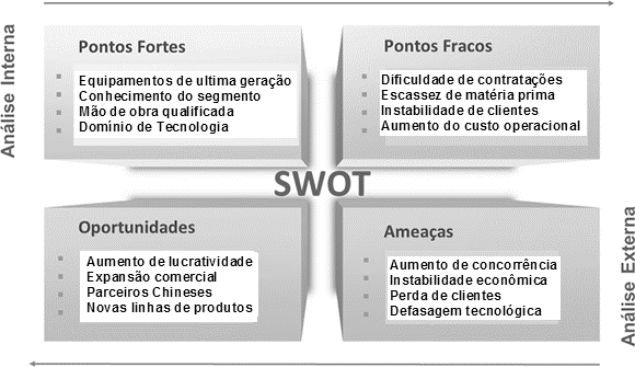 Nas duas situações apresentadas, o Professor poderá utilizar como ferramenta análise de ambientes, a análise SWOT, utilizada para monitorar tanto o ambiente interno quanto o externo da empresa. Essa análise consiste em diagnosticar as partes interna e externa da empresa visando à identificação das forças (strengths), fraquezas (weaknesses), oportunidade (opportunities) e ameaças (threats), além de identificação de pontos fortes e pontos a melhorar. As quatro zonas da matriz SWOT servem como indicadores da situação da organização. A análise SWOT serve para posicionar ou verificar a situação e a posição estratégica da empresa no ambiente em que atua (MCCREADIE, 2008).