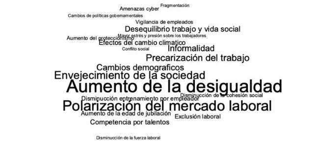 “Tendencias” ha sido utilizada como variable para identificar los cambios más predichos en la literatura con respecto a cambios sociales, laborales, demográficos, culturales o tecnológicos que resultarán o influenciarán las nuevas relaciones del futuro del trabajo. Para este análisis, fueron utilizadas dos variables, la primera con respecto a tendencias negativas y la segunda con respecto a tendencias positivas.