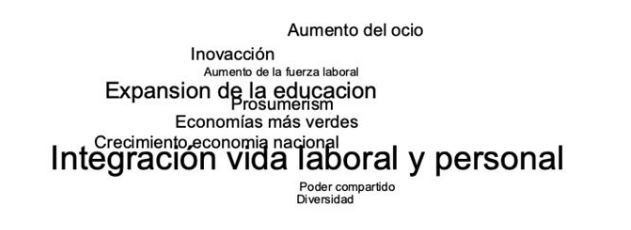 En total 10 diferentes respuestas fueron recogidas, con un promedio de 1,7 respuestas por actor. La Integración entre vida laboral y personal ha sido predicha como una tendencia por 5 (42%) actores, el atributo con mayor frecuencia, luego de Expansión de la educación con 3 (25%) – (Figura 12).