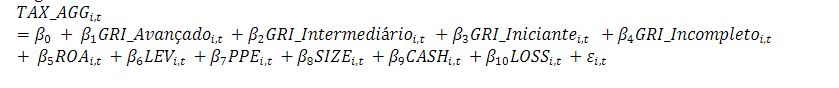 Palavras-chave: Responsabilidade social corporativa, sustentabilidade empresarial, agressividade tributária, Global Reporting Initiative.
