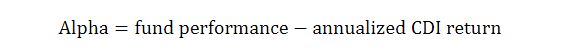 The fund performance is the relative change in the price of an asset in a period (QUANTUM AXIS, 2019). Fund performance is givem by equation 2: