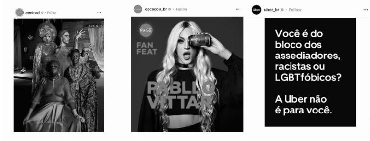 Representatividade consiste em simbolizar social e politicamente os interesses de determinado grupo, classe social e/ou de um povo. Nos últimos anos temos ouvido com certa frequência “representatividade importa” para se referir a presença de minorias (negros/as, mulheres, LGBTQI, entre outros) em espaços antes ocupados apenas por homens brancos heterossexuais (Haider, 2019). Pudemos observar no quadro 1 diversos comentários de @usuários ressaltando a relevância de se sentir representado/a, e outros tantos que manifestaram apoio à posição das três empresas que investigamos. Contudo, no contexto da representatividade das empresas, humanizemos a frase: A quem importa a representatividade? Para as marcas ou para os sujeitos? Seria uma relação em que ambos ganham?