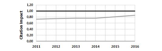 Entretanto, deve-se analisar o número e o resultado com parcimônia incluindo uma importante variável, o fator de impacto do artigo (RUIZ; GRECO; BRAILE, 2009), ou seja, bons artigos naturalmente citam artigos anteriores, refletindo assim sua contribuição intelectual ao estado da arte no assunto estudado. Conforme os dados disponibilizados pela Clarivate Analytics o impacto dos artigos brasileiros, em termo do número de citações, tem sido historicamente abaixo da média mundial, mas aumentou 18% entre 2011 e 2016 (0,73 para 0,86). Convém destacar que, conforme Cross; Thonsom; Sinclair (2017), o termo “impacto de citação” é usado para se referir à média normalizada de contagem de citações para um artigo ou grupo de artigos, em vez da contagem de citações por artigo. Este procedimento é para corrigir tendências indesejadas provocadas por exemplo pela “idade”, tempo de publicação, de um artigo (artigos mais antigos tiveram mais tempo para coletar citações do que os mais recentes).
