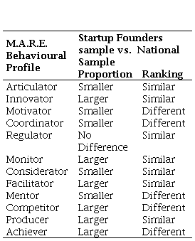 Comparative analysis of the national sample and the startup founders sample – M.A.R.E. behavioural profiles